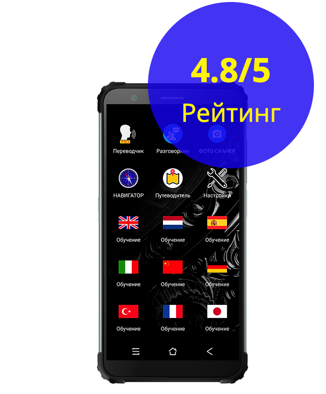 В нём нет ничего лишнего, только всё самое необходимое для общения с иностранцами. При этом, несмотря на свой примитивный дизайн, переводчик поддерживает более 80 языков. Правда, переводит он только при стабильном интернет-соединении (Wi-Fi, SIM-карта).