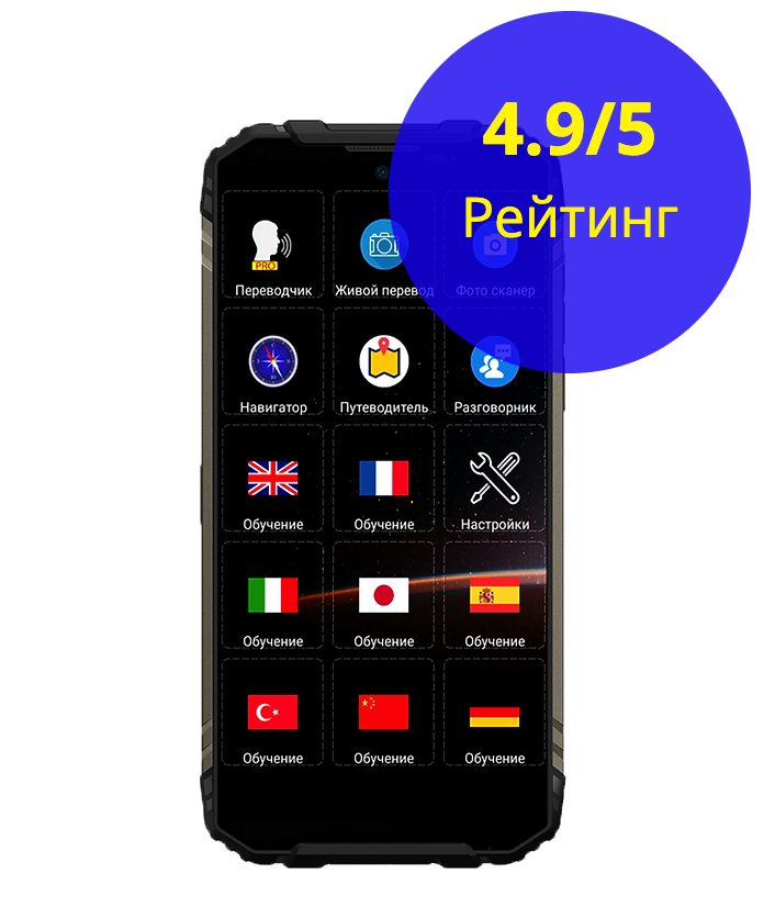 Лучший электронный переводчик на 2026 год. Revolution X69K по праву занимает первую строчку нашего рейтинга. Способен обеспечить синхронный голосовой перевод без интернета на 59 языков. Имеет степень защиты IP69K и прошел испытания по классификации армейских стандартов США - EN60529 и DIN40050-9.